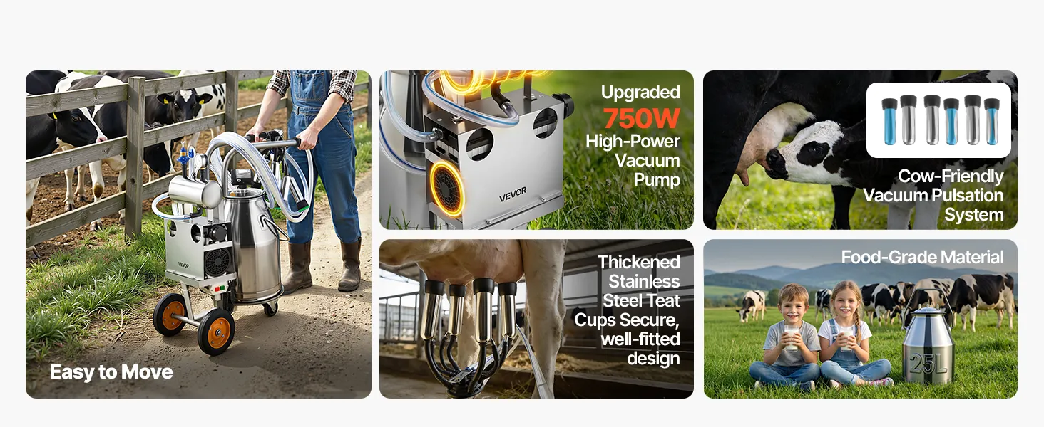 Sealed System, No Milk Waste: This fully sealed cow milking machine reduces leakage and milk loss, ensuring efficient collection every time. Designed for cows only. Goat or sheep use requires separate teat cups (not included)