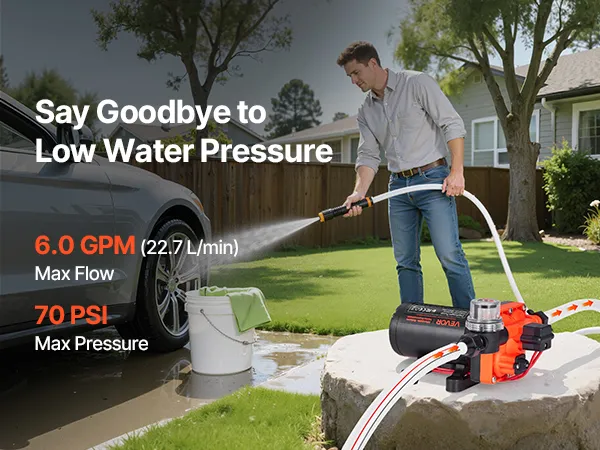 Automatischer Start & Stopp: Mit einem über 200.000 Zyklen getesteten Druckschalter und einem Bypassventil. Öffnen Sie den Wasserhahn und die Wasserpumpe startet automatisch. Schließen Sie ihn und die Pumpe stoppt sofort. Sie können den Wasserdruck auch mit einem Inbusschlüssel einstellen.