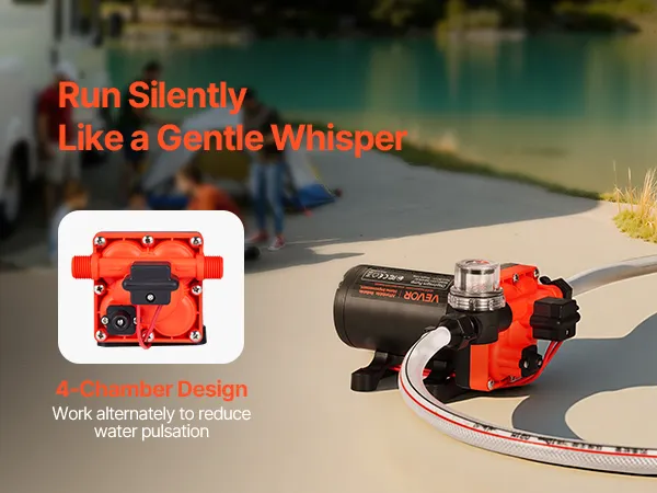 Geräuscharm, Vibrationsreduzierung: 4-Kammer-Membranpumpe gepaart mit einem reinen Kupfermotor für einen reibungslosen Betrieb und reduziert Wasserpulsation und Vibrationen. Halten Sie den Lärm so leise wie ein leises Gespräch mit 50 dB