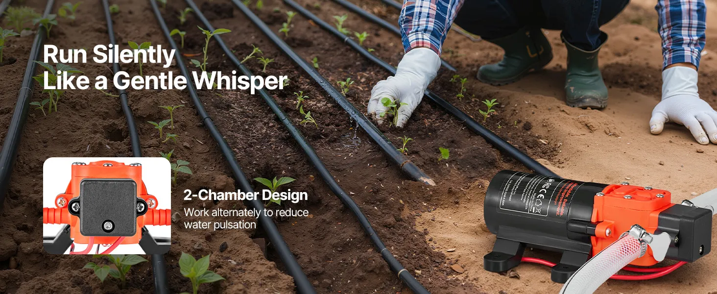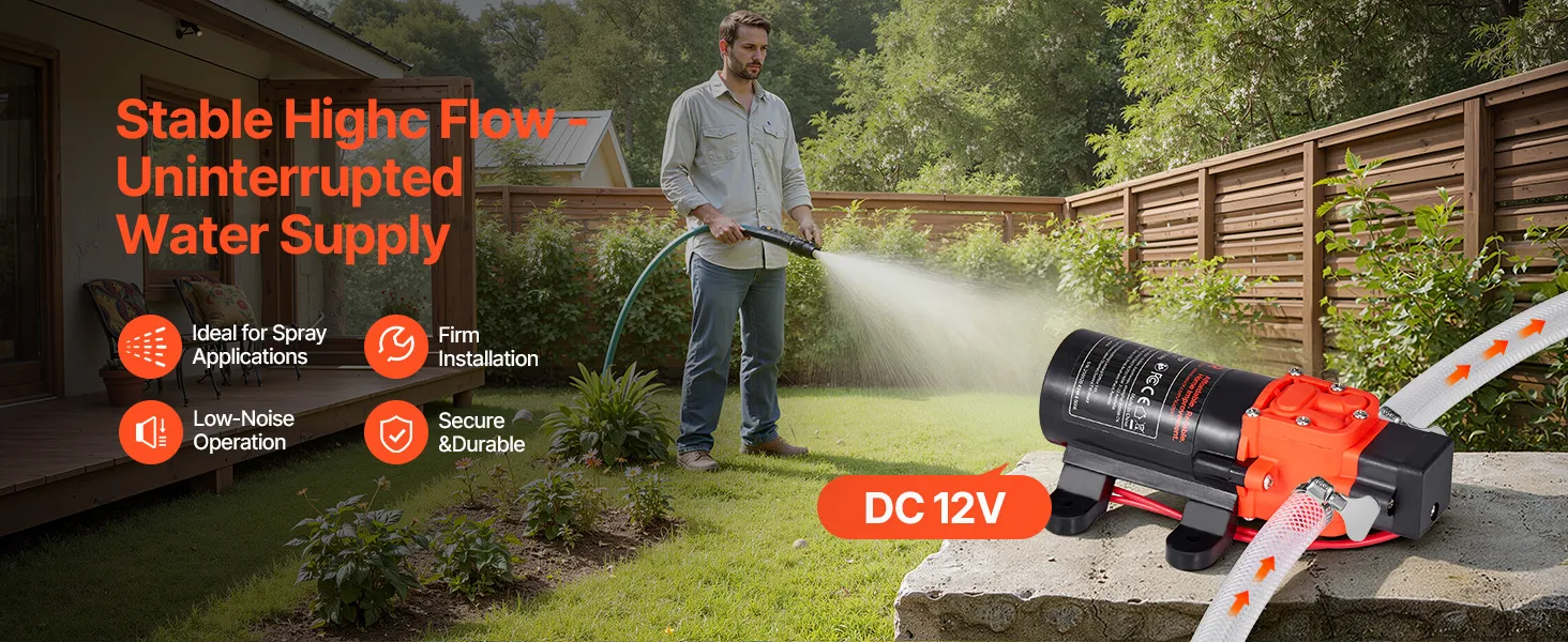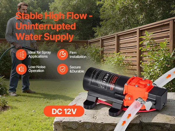Erleben Sie hohe Wasserdurchflussraten mit unserer 12-V-Gleichstrom-Membranpumpe. Sie saugt bis zu 3 m selbst an, benötigt kein Voransaugen und bewältigt problemlos kurze Trockenläufe. Dank integriertem Überhitzungs- und Überlastungsschutz sorgt sie für einen konstanten Wasserdruck für Ihren täglichen Bedarf.