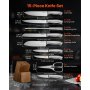 VEVOR Kitchen Knife Set with Block and Sharpener, 15 Piece German High Carbon Stainless Steel Sharp Knife Set, Kitchen Cutlery with Ergonomic Handle, Sharpening Rod and Wooden Block, for Home Cooks