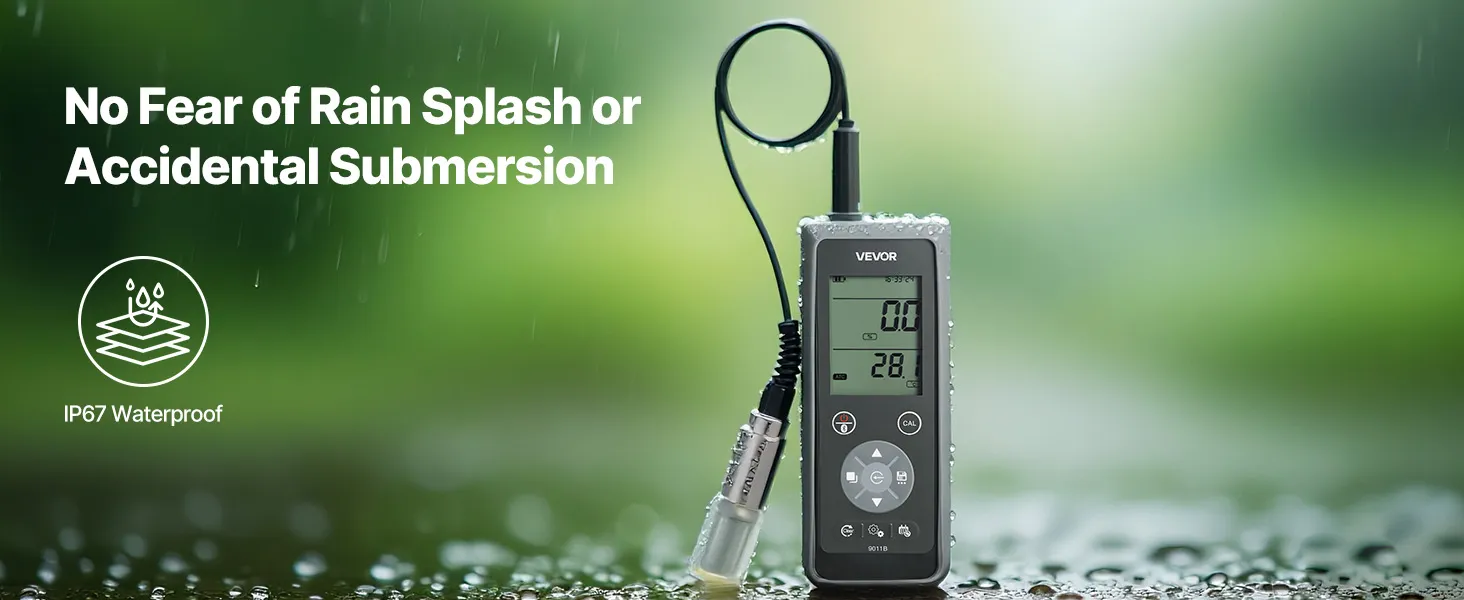 IP67 wasserdicht: Das Testkit für gelösten Sauerstoff ist spritzwassergeschützt und widersteht versehentlichem Untertauchen. Die stabile Konstruktion gewährleistet einen zuverlässigen Betrieb in feuchter Umgebung und ist somit ideal für Feldarbeiten und Wasseranwendungen im Labor