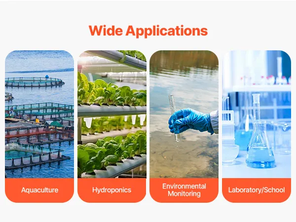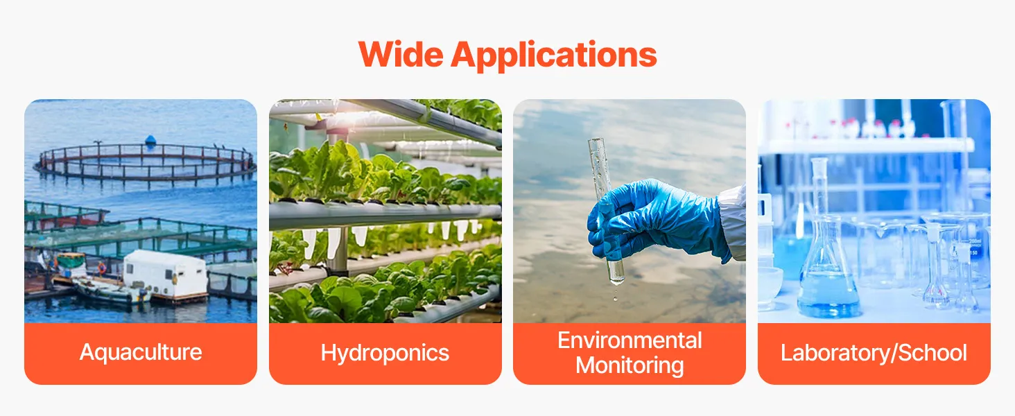 Unser Teichsauerstoffmessgerät eignet sich ideal für Umweltüberwachung, Aquakultur, Abwasserbehandlung und Laborforschung. Es eignet sich besonders für Profis und Hobby-Wassersportler, die genaue Messungen des gelösten Sauerstoffs in unterschiedlichen Wasserumgebungen benötigen.