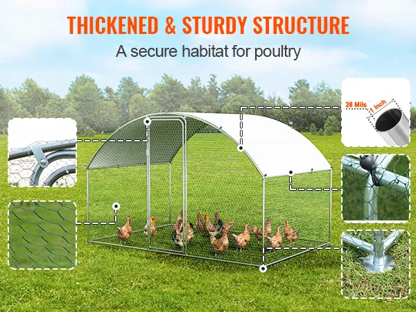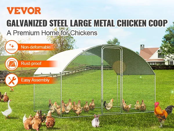Der Hühnerstall von VEVOR ist einfach aufzubauen. Der verzinkte Stahlrahmen lässt sich einfach zusammenstecken. Er ist robust und langlebig. Für den Zusammenbau werden nur wenige Werkzeuge benötigt. Mit einfachen Anweisungen können Sie ihn in wenigen Stunden aufbauen. Das Rahmendesign sorgt für Stabilität und Haltbarkeit. Verzinkter Stahl bietet Rostbeständigkeit für den Langzeitgebrauch. Dies macht ihn zu einer zuverlässigen Wahl für die Unterbringung Ihres Geflügels. Der einfache Zusammenbau spart Ihnen Zeit und Mühe. Die robuste Konstruktion dieses Hühnerstalls ermöglicht es ihm, rauen Außenbedingungen standzuhalten.