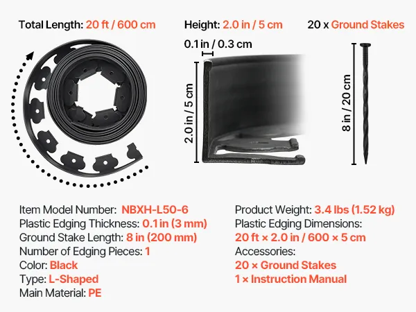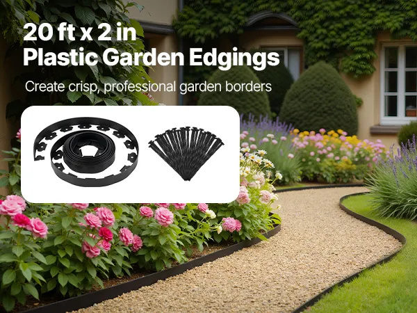 VEVOR Rasenkante, 600 x 5 cm, Kunststoff-Gartenbegrenzung mit 120 Spikes, Beeteinfassung, Landschaftseinfassung, Pflasterkante, Beetumrandung, Wegbegrenzungen für Blumenbeete, Hofpflaster
