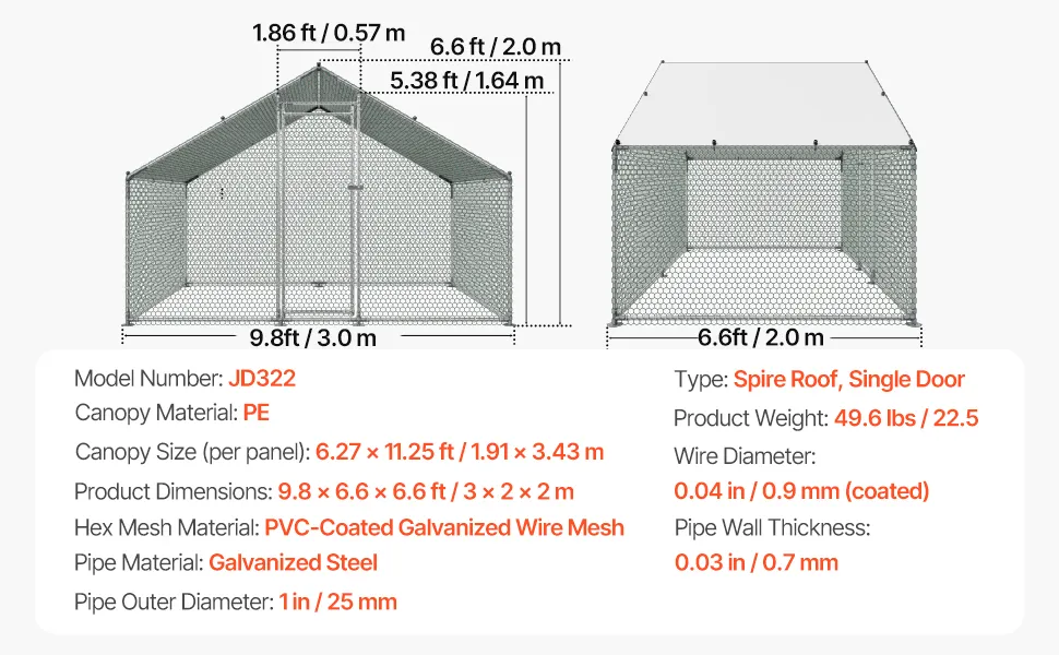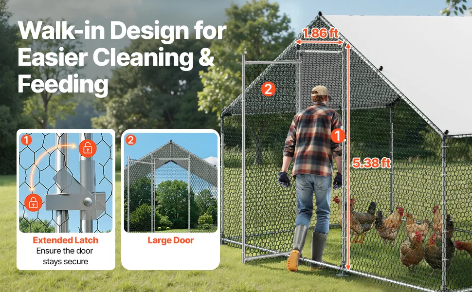Wir präsentieren den begehbaren Hühnerstall von VEVOR, der je nach Wunschgröße viel Platz für einen kleinen oder großen Hühnerstall bietet. Wenn Sie sich fragen, wie groß Ihr Hühnerstall sein soll, oder nach Plänen für einen selbstgebauten Hühnerstall suchen, bietet dieser montagefertige Hühnerstall auf der Weide mehr Platz als Holzställe. Er ist ideal für Geflügel, Enten, Kaninchen und sogar Haustiere wie Katzen oder Hunde. Ein angeschlossener Auslauf ermöglicht Ihren Vögeln, im Sommer im frischen Gras zu baden und die Sonne zu genießen. Gleichzeitig sind sie sicher, da er Angriffe von Raubtieren wie Waschbären verhindert.