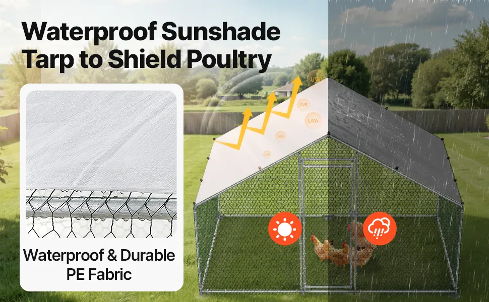 Wenn Sie Hühner im Garten halten, ist ein stabiler Hühnerstall unerlässlich, damit Ihre gefiederten Freunde glücklich, gesund und sicher leben. Wer Hühner im Garten hält, sollte unbedingt den Platzbedarf berücksichtigen. Ein sicherer Stall mit stabilem Dach bietet genau das. Der VEVOR Hühnerstall aus Metall ist eine High-End-Version, die Sicherheit, Platz und Komfort für moderne Hühnerhalter bietet. Mit einem großen Auslauf bietet der VEVOR Hühnerstall Ihrer Herde viel Platz zum Austoben, Eierlegen und Ausruhen.