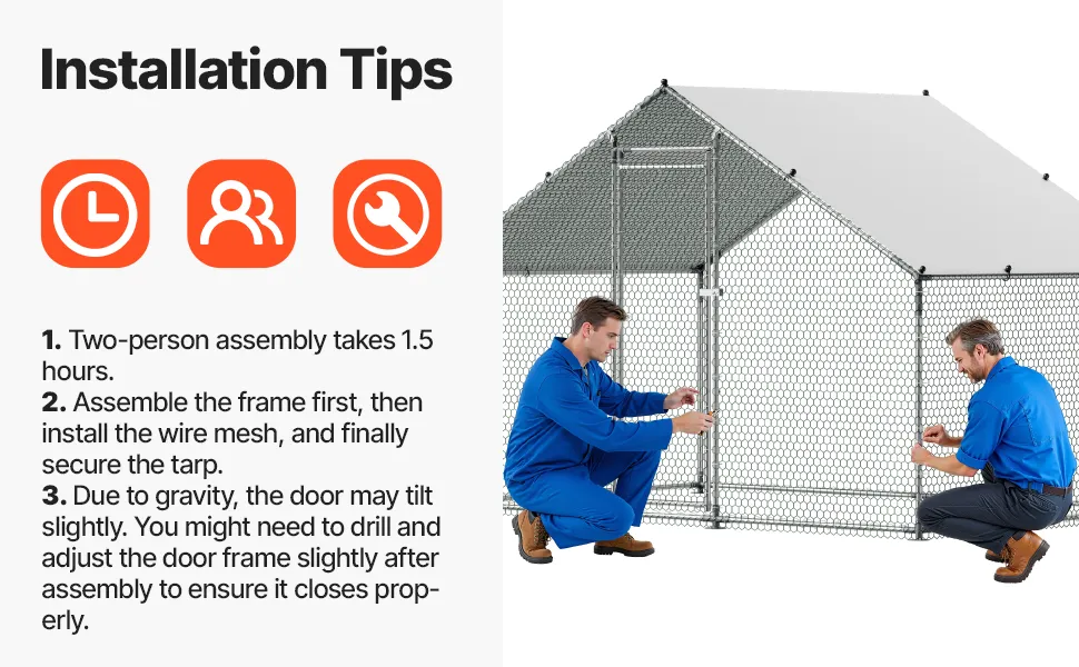 Der Aufbau ist im Handumdrehen erledigt und Sie müssen nicht stundenlang komplizierte Pläne für einen Hühnerstall selbst umsetzen. Einfach zusammenbauen und los geht‘s! Der VEVOR Hühnerstall verfügt über eine herausnehmbare Wanne und erleichtert die Reinigung erheblich, wodurch Ihr Stall sauber bleibt. Das erhöhte Design sorgt nicht nur für zusätzliche Belüftung, sondern hält auch die Wartungskosten niedrig und sorgt gleichzeitig für eine saubere und sichere Stallumgebung. Es hebt den Stall vom Boden ab, um Ihre Hühner und Eier zu schützen und ihnen Komfort zu bieten.