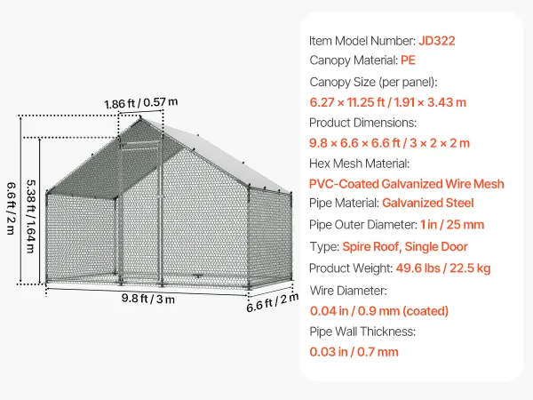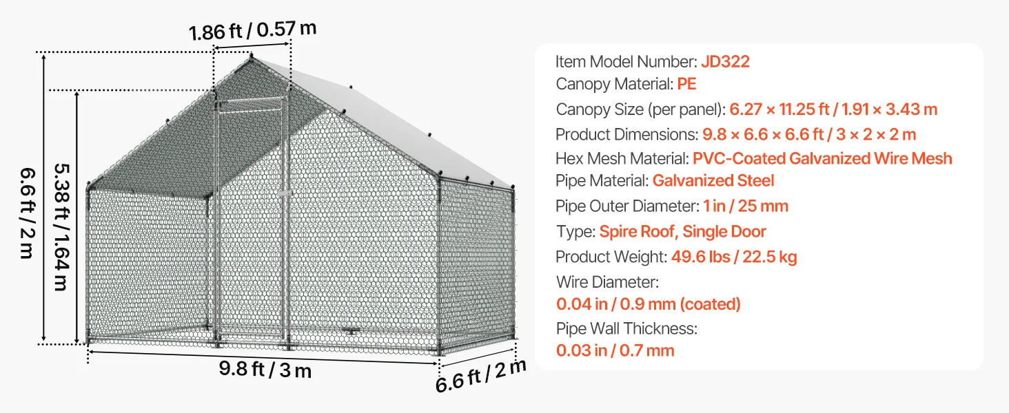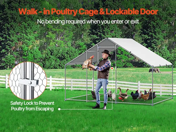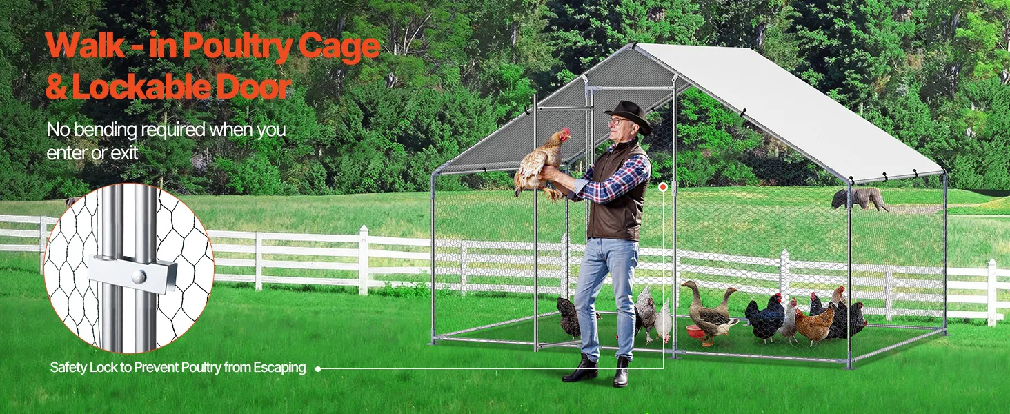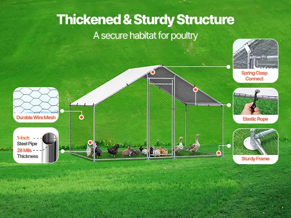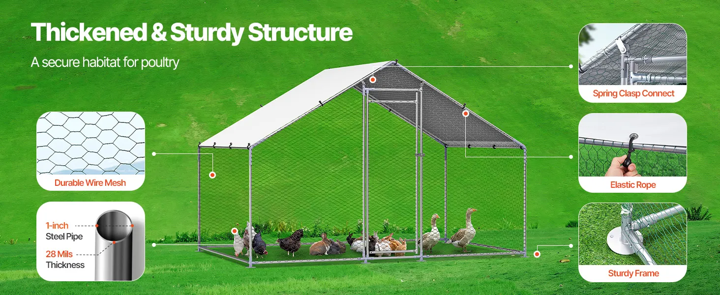With 1-inch thick steel tubing and a hexagonal protective grid, this walk-in chicken run provides sturdy support and protection, ensuring that poultry can move freely in a safe environment.