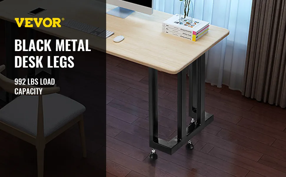 Die Metallschreibtischbeine sind aus Eisen mit Backlack zum Korrosionsschutz gefertigt. Das Produkt verfügt über verstellbare Füße, um eine hohe Stabilität zu gewährleisten. Mit den vorgebohrten Löchern ist eine einfache und schnelle Installation für Sie. Die Hochleistungsbeine mit einem maximalen Ladegewicht von 992 Pfund (ca. 450 kg) sind ideal für Couchtische, Schreibtische, Beistelltische usw.