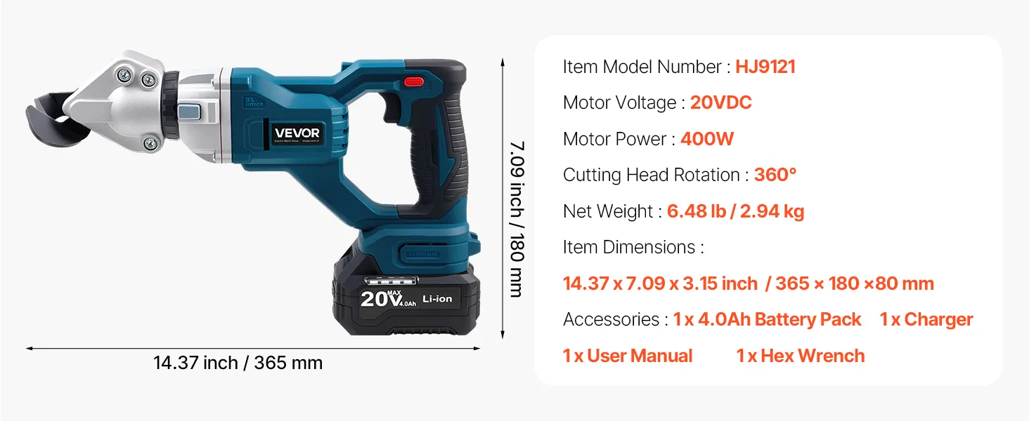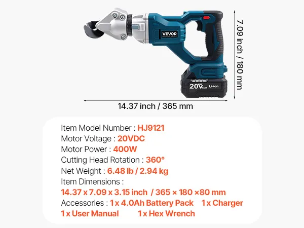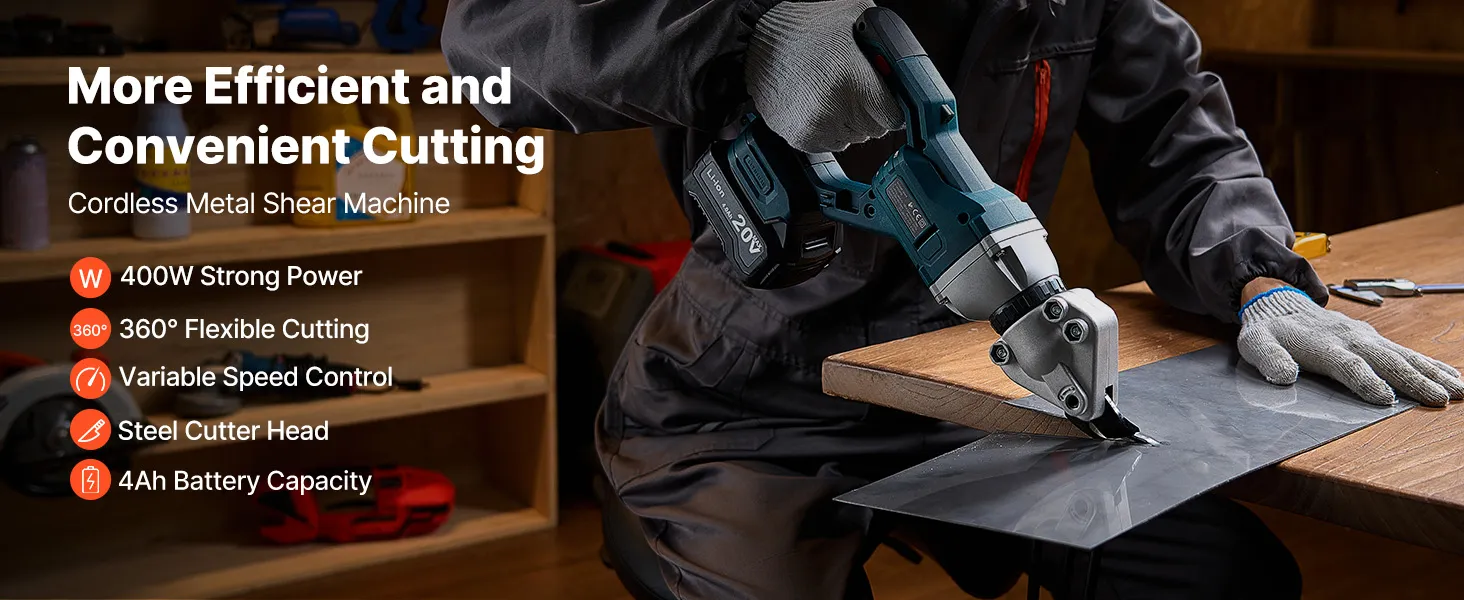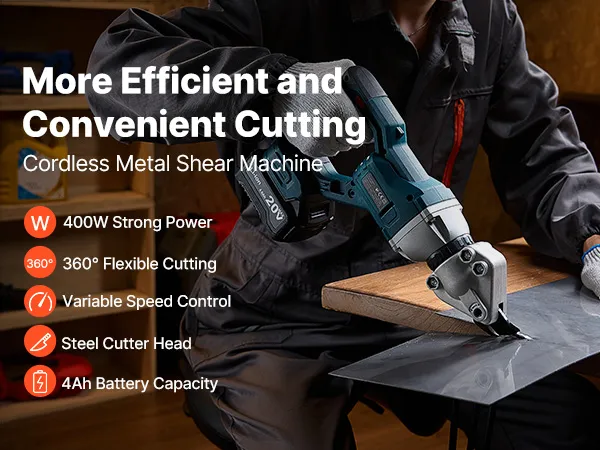 Effizientes Metallschneiden: Diese elektrische Metallschere verfügt über eine Hochgeschwindigkeits-Schneidgeschwindigkeit von 25.000 U/min, eine Motorleistung von 400 W und ein Drehmoment von 80 N/m und sorgt so für gleichmäßige und effiziente Schnitte bei verschiedenen Metallblechen, sodass Ihre Schneidaufgaben mühelos und präzise erledigt werden können.