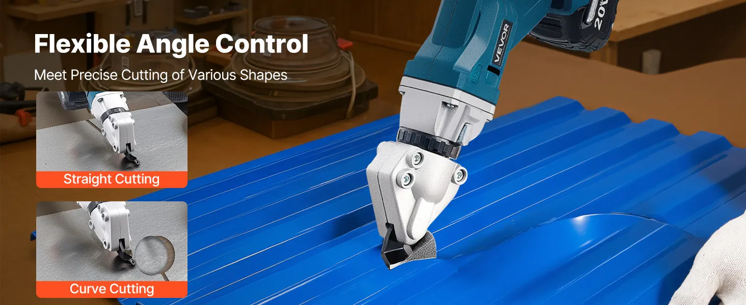 Flexibles 360-Grad-Schneiden: Mit seinem um 360 Grad drehbaren Kopf kann dieses elektrische Metallschneidewerkzeug gerade Linien, Kurven und unregelmäßige Formen bearbeiten. Passen Sie Winkel und Richtung für präzises und effizientes Schneiden an und bewältigen Sie problemlos komplexe Aufgaben.
