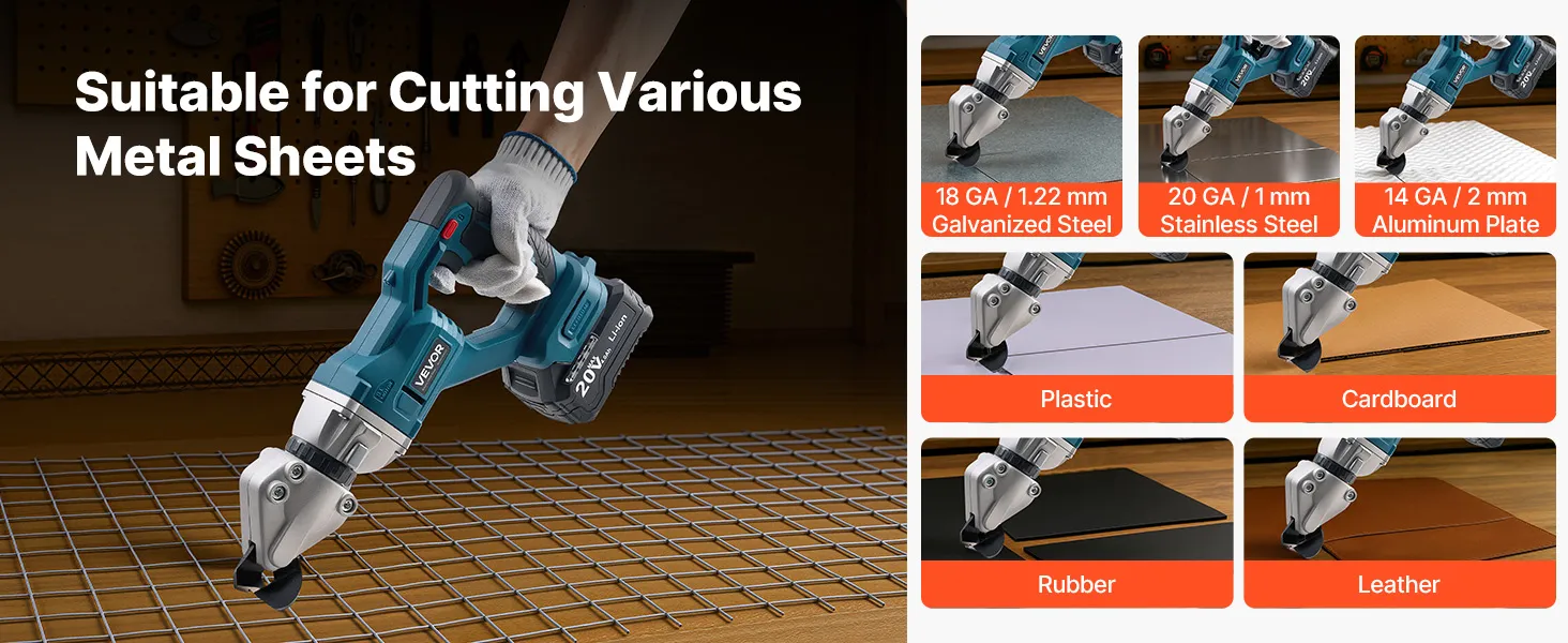 Diese elektrische Schere ist für eine Vielzahl von Materialien geeignet und schneidet problemlos Bleche, Kunststoff, Karton, Gummi und Leder. Ihre Vielseitigkeit erfüllt die unterschiedlichsten Projektanforderungen in Werkstätten, Garagen und im Heimbereich.