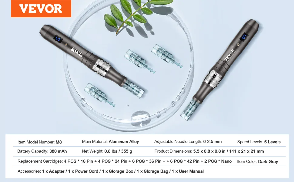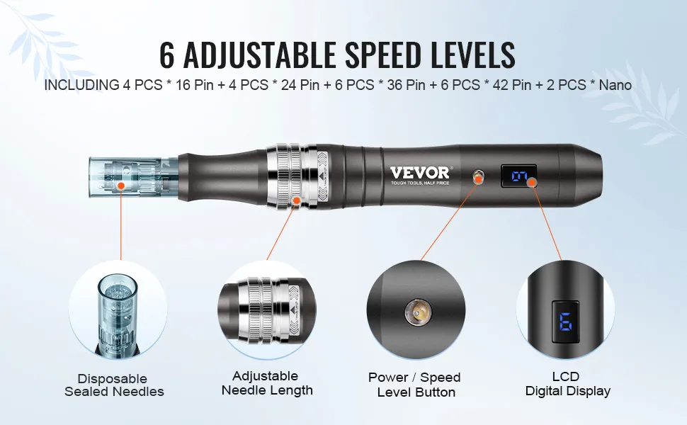 Enthüllen Sie Ihr Strahlen: Der professionelle Mikronadelstift von VEVOR verbessert effektiv das Hautgewebe, fördert die Produktaufnahme, hellt Narben und Altersflecken auf und verbessert die Hautelastizität. Er wird mit 4 Stück * 16 Stiften + 4 Stück * 24 Stiften + 6 Stück * 36 Stiften + + 6 Stück * 42 Stiften + 2 Stück * Nano-Profi-Kartuschen zum Austausch geliefert, ideal zur Behandlung von Aknenarben, gelblichen Flecken, Pigmentierungsproblemen, Falten usw.