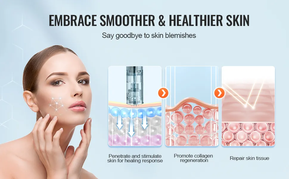 Der elektrische Mikronadelstift verbessert effektiv die Hautstruktur, indem er die natürlichen Reparaturprozesse der Haut stimuliert. Bei regelmäßiger Anwendung hilft er, die Reparatur des Hautgewebes zu fördern, den Hautton aufzuhellen, die Hautelastizität zu verbessern.