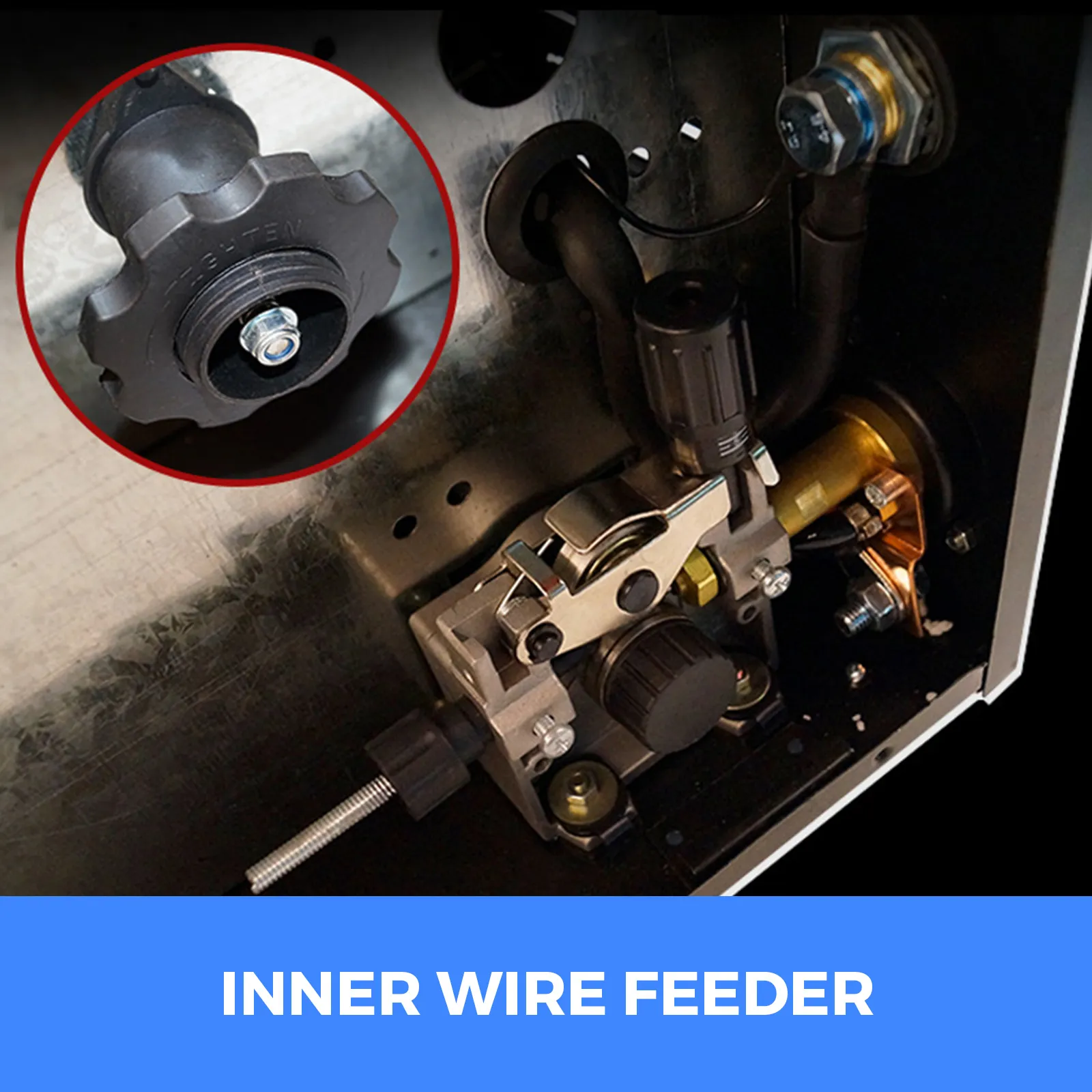 Einfacher Schalter zum schnellen Umschalten des Schweißmodus. Ausgestattet mit einem charakteristischen LCD-Monitor, der Spannung und Ampere für Ihre Inspektion anzeigt. Der Knopf für die Drahtvorschubgeschwindigkeit ist einstellbar. Sie können ihn an Ihre Anwendung anpassen und mit verschiedenen Stärken schweißen.