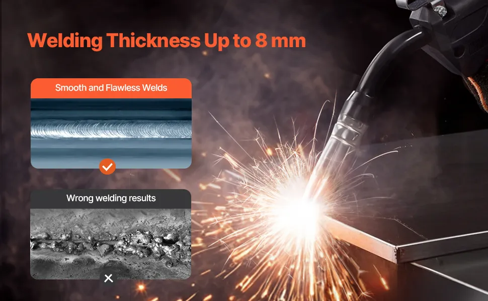 Hohe Leistung: Dieses Schweißgerät liefert einen leistungsstarken Ausgangsstrom von 130 A und unterstützt Schweißdicken von bis zu 8 mm. Es ist mit verschiedenen Materialien kompatibel, darunter Weichstahl, Edelstahl, Gusseisen, Blech, Vierkantrohre und Metallkäfige. Es ist die professionelle Wahl für Ihre Schweißaufgaben und erzielt glatte und makellose Schweißnähte.
