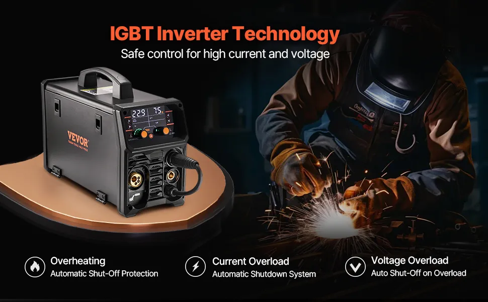 Unser MIG-Schweißgerät verfügt über einen fortschrittlichen IGBT-Wechselrichter zur sicheren Steuerung, der eine stabile und zuverlässige Schweißleistung gewährleistet. Ausgestattet mit mehreren Schutzsystemen bietet es umfassende Betriebssicherheit.