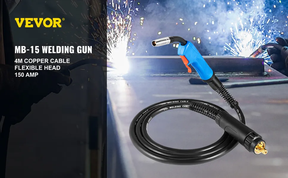 Premium MB-15 CO2-Schutzschweißbrenner mit 4 m flexiblem Kabel. Verwenden Sie eine nahtlose Verdickungsdüse, reine Kupferverbindungen und ein sauerstofffreies Kabel. Es ist einfacher zu installieren. Ergonomischer Griff, sicher und bequem zu bedienen.