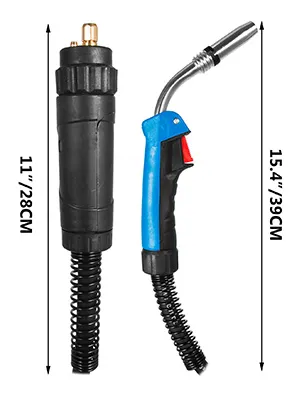 Premium-CO2-Schutzschweißbrenner MB-15 mit 5 m flexiblem Kabel. Verwenden Sie eine nahtlose Verdickungsdüse, Verbindungen aus reinem Kupfer und sauerstofffreies Kabel. Es ist einfacher zu installieren. Ergonomischer Griff, sicher und bequem zu bedienen.