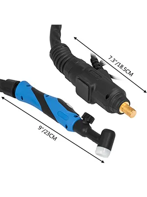 Die hochwertige WIG-Schweißpistole mit einem Kabel von 12,5 Fuß (3,6 m). Mit Hilfe des kompletten Zubehör können Sie diesen Schweißbrenner einfach an verschiedenen Orten anwenden. Zur Reduzierung von Überhitzung, Ausfallzeiten und Kosten. Dank des einzigartigen Bedienungsdesigns fühlt sich der Benutzer komfortable. Nur mit einem Druckknopf beim Schweißen ist dieser Brenner einfach zu bedienen.