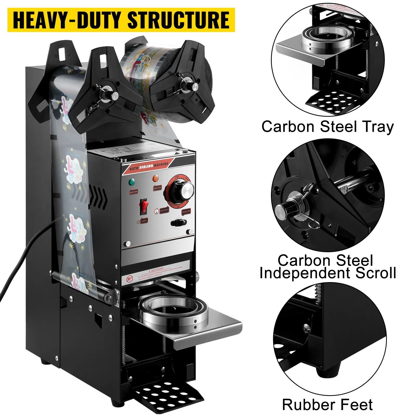 Dank des 40 W Rotkupfermotors kann diese Milchtee-Versiegelungsmaschine in einer Stunde bis zu 500 Tassen versiegeln. Die endgültige Dichtungsleistung hängt von Ihrem persönlichen Grad an Bedienungskompetenz ab.