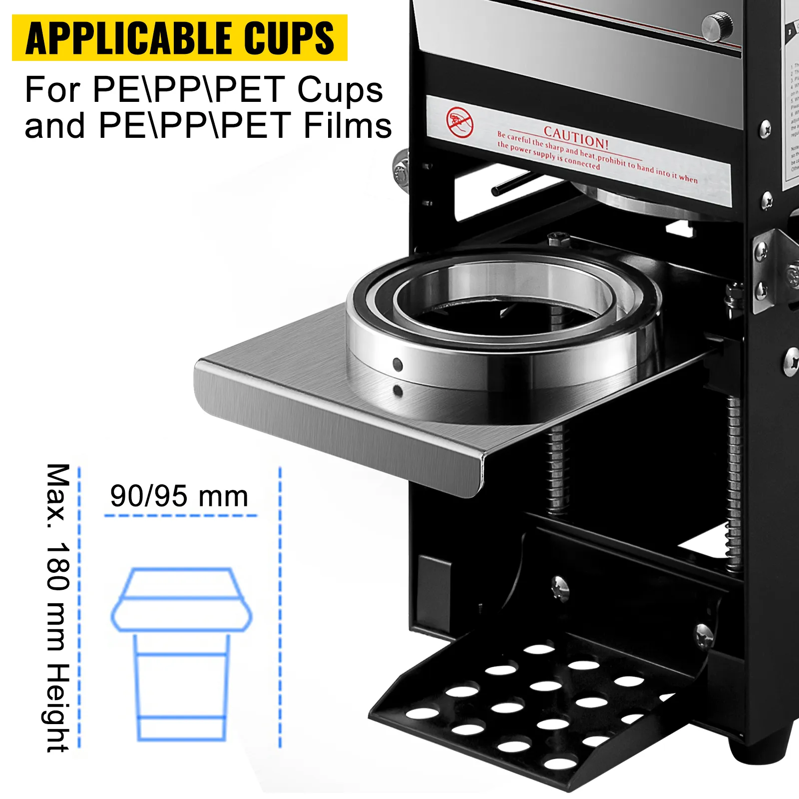 Becherempfehlung zur Verwendung mit Bechern mit einem Durchmesser von 90 mm und einem Durchmesser von 95 mm und einer maximalen Becherhöhe von 180 mm. Unsere Teetassen-Versiegelungsmaschine ist mit hochwertiger Versiegelungstechnologie für PP, PE und PET-Becher und -Folien.