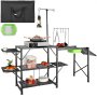 VEVOR Camping Kitchen Outdoor Camping Kitchen 174 x 50 x 160 cm, Travel Kitchen Tent Cabinet Foldable 40 + 22 kg Folding Camping Table Kitchen Box Worktop Space for Sink Carry Bag Black
