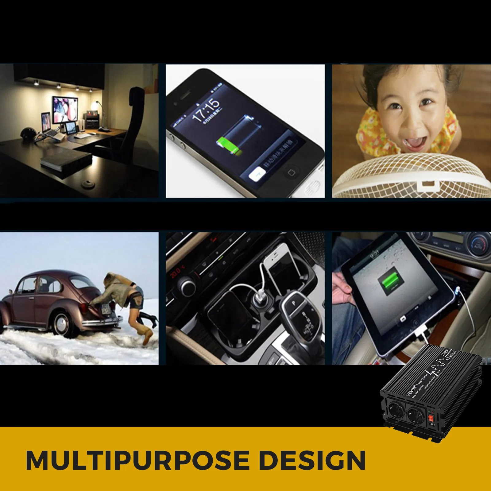 Unser modifizierter reiner Sinus-Wechselrichter wandelt Gleichstrom in Wechselstrom um, der Haushaltsgeräte wie Mixer, Kühlschrank und vieles mehr, sogar Autos, mit Strom versorgen kann. Die Dauerleistung beträgt 1500W und die Spitzenleistung 3000 W. Das Aluminun-Gehäuse sorgt für hohe Haltbarkeit und lange Lebensdauer.