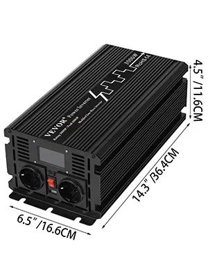 Our modified pure sine power inverter transforms DC power into AC power, which can power households products like a blender, refrigerator, and more, even cars. The continuous output is 3000W and the peak power is 6000W. LED display and remote controller are also included.