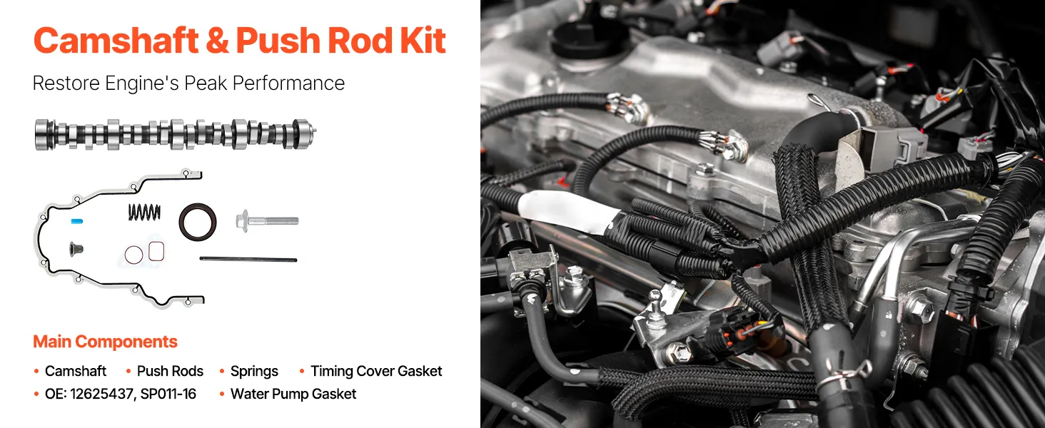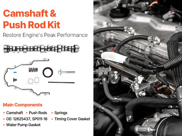 Bei Fahrzeugen mit Langzeiteinsatz können die internen Nockenwellenkomponenten verschleißen, was den normalen Start beeinträchtigt und zu Leistungsverlust führt. Dieses komplette Nockenwellen- und Stößelstangen-Kit bietet eine praktische Lösung durch Komponentenaustausch.