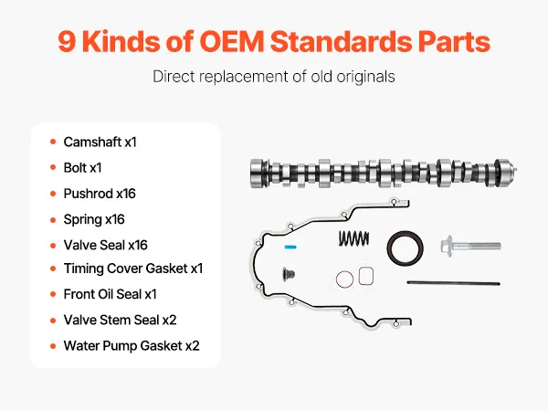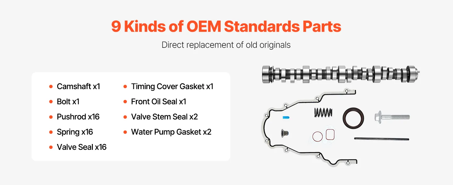 Das Nockenwellen- und Stößelstangen-Kit behebt zahlreiche Probleme, die durch alternde OEM-Teile verursacht werden, darunter Motorölverbrauch, Leistungsverlust, Ventilgeräusche und Kühlmittellecks. Es verlängert die Motorlebensdauer und sorgt für eine stabile Kraftstoff- und Leistungsabgabe.