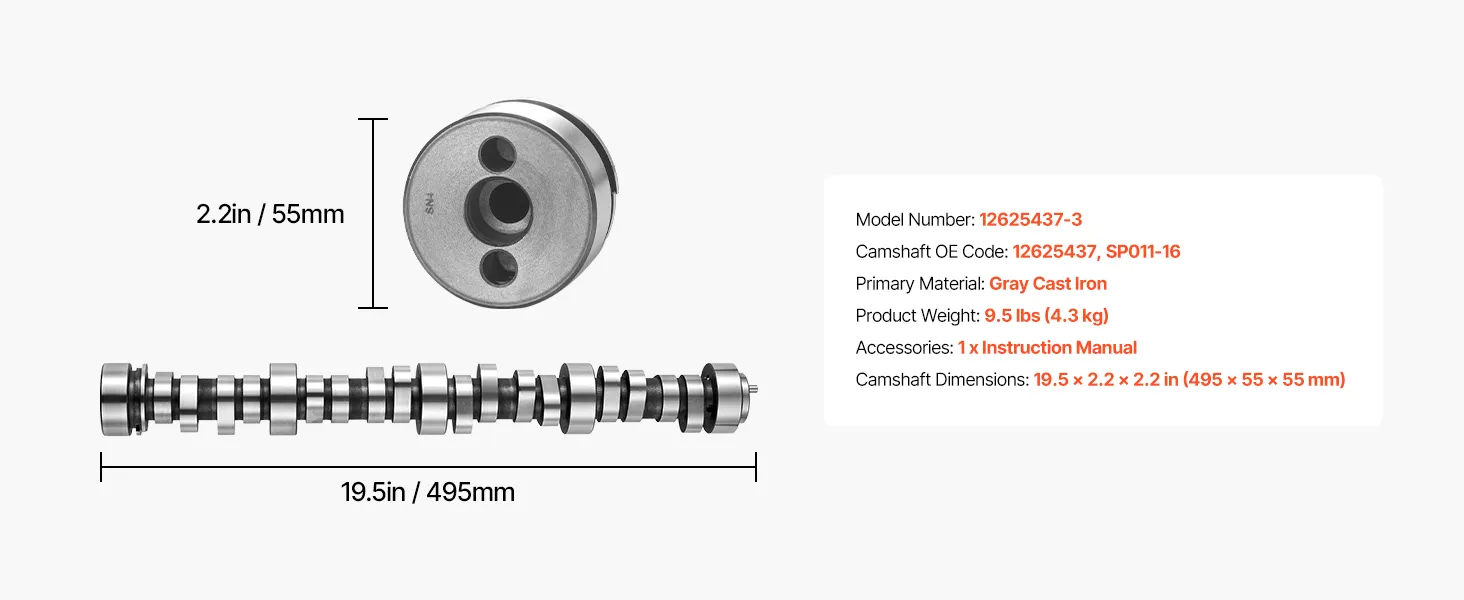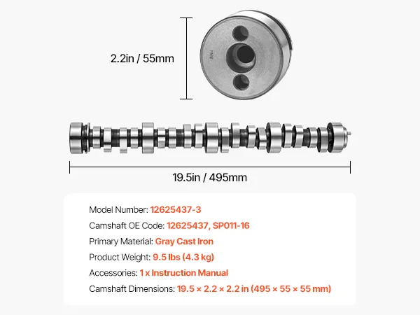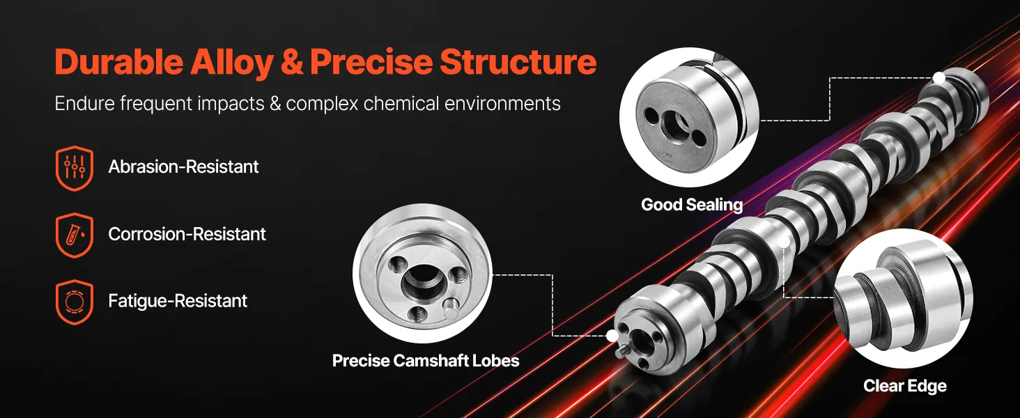 Verbesserte Verschleißfestigkeit: Die Nocke besteht aus langlebigem Grauguss und bietet Verschleißfestigkeit und Dauerfestigkeit. Sie kann Tausenden von Stößen pro Minute im Motor standhalten und reduziert den Verschleiß der Kontaktflächen zwischen den Nocken und den Stößelsäulen