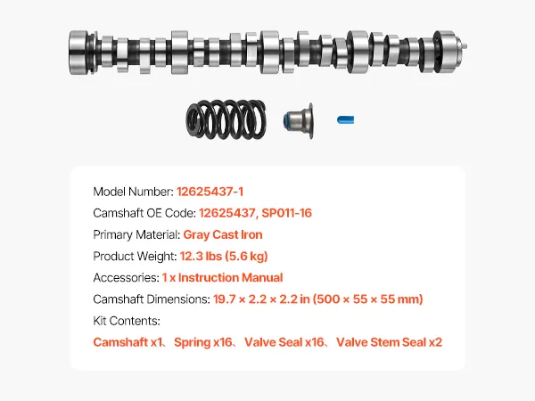 VEVOR LS Truck Nockenwellen Ersatzkit aus Gusseisen mit Federn & Ventildichtungen, kompatibel mit GM Gen3/4 Norris Trucks von 1999–2013, für 4,8 l 5,3 l 6,0 l 6,2 l LS-Motoren, OE 12625437 SP011-16