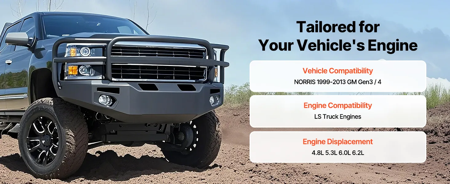 Hohe Kompatibilität: Unser Nockenwellensatz ist mit Norris-Trucks von 1999–2013 GM Gen3/4 kompatibel. Passend für LS-Truck-Motoren, geeignet für Hubräume von 4,8 l, 5,3 l, 6,0 l und 6,2 l