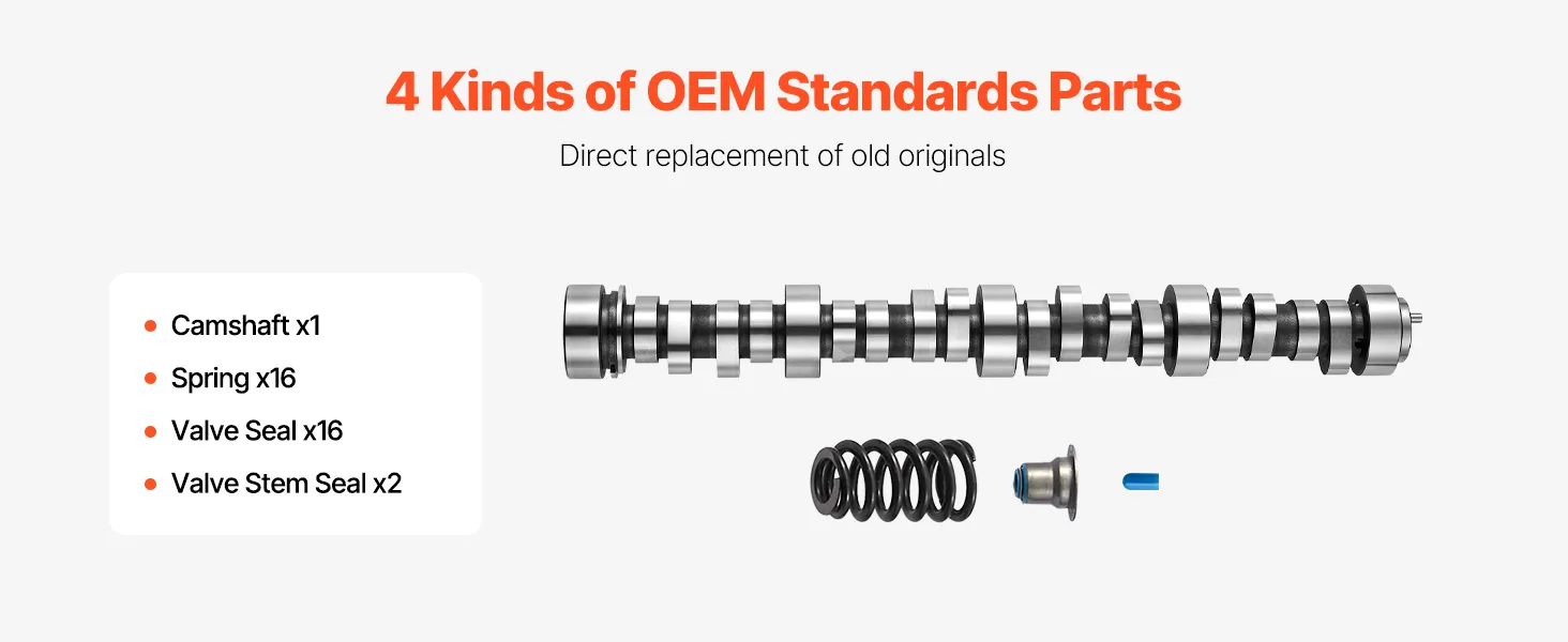 Motorleistung wiederherstellen: Das Nockenwellen-Kit ist für die Behebung umfassender Leistungseinbußen durch Alterung des Ventilsystems konzipiert, insbesondere für die gezielte Reparatur von Motoren mit hohem Ölverbrauch oder hoher Laufleistung
