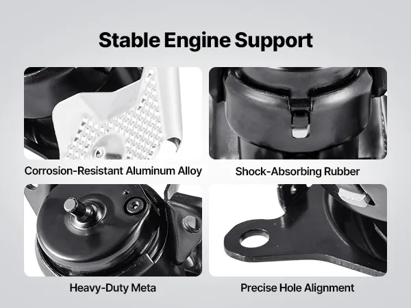 Hochleistungsmetall sorgt für eine hochfeste, korrosionsbeständige und langlebige Motorhalterung, während die Gummischicht Vibrationen absorbiert und Geräusche minimiert. Die kombinierten Materialvorteile sorgen für Langlebigkeit und Stabilität und verlängern die Gesamtlebensdauer.