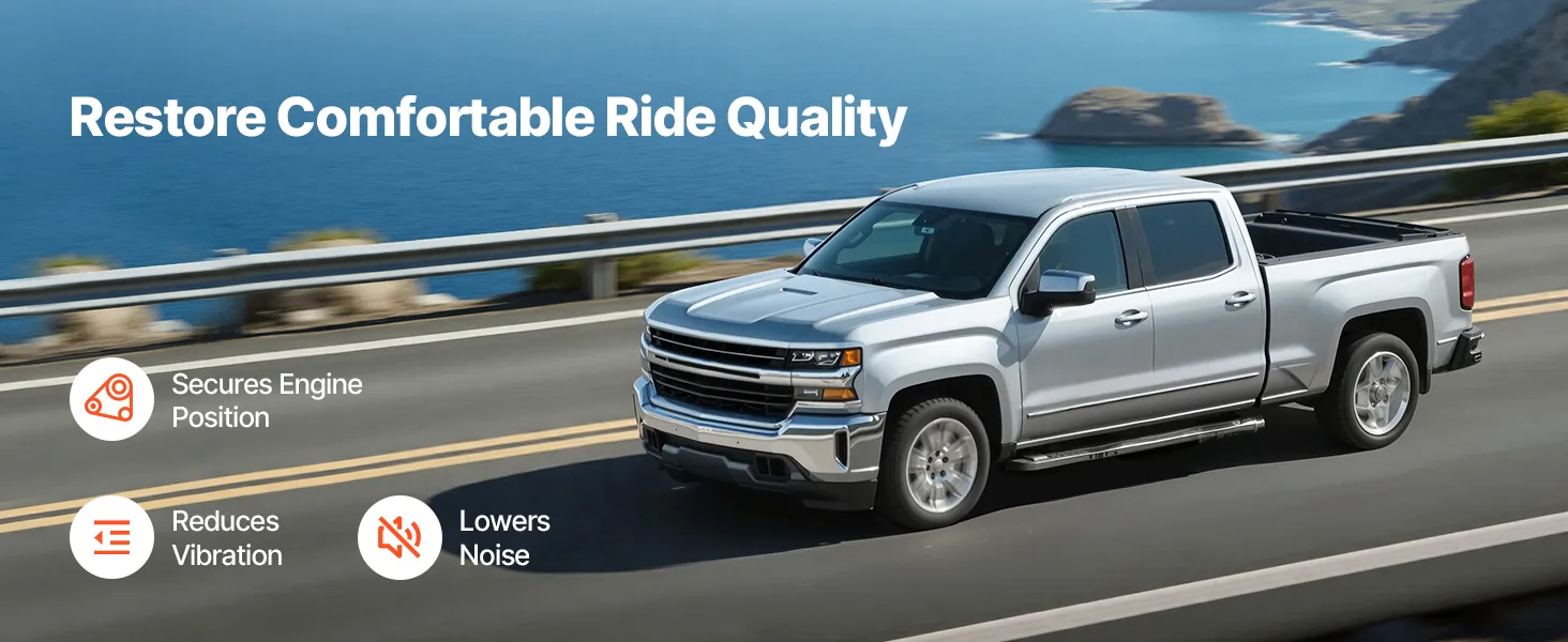 Fahrzeugkompatibilität: Diese Motorhalterung wurde speziell für den Chevrolet Silverado 1500 5,3 l V8 (Baujahr 2014–2018) entwickelt und entspricht den Werksmaßen, um eine ideale Passform und eine nahtlose Installation zu gewährleisten.