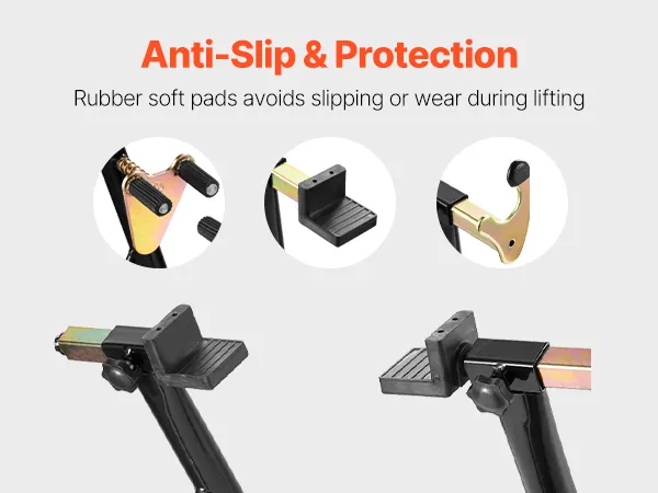Rutschfester Schutz: Die Gabelköpfe dieses Motorradrahmenständers sind mit rutschfesten Gummifüßen ausgestattet, die Schäden am Motorrad vermeiden und gleichzeitig die Reibung erhöhen. Dies verringert das Risiko des Rutschens beim Anheben und sorgt für ein stabileres Anheben