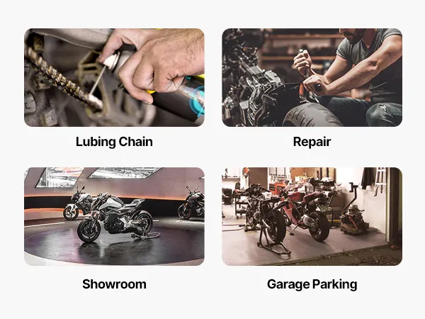 Unser Motorrad-Wartungsständer ist aus professionellem, verstärktem Hochleistungsstahl gefertigt und bietet stabilen Halt für die meisten Motorräder. Er ist verformungs- und biegefest und eignet sich ideal für Heimreparaturen, Langzeitlagerung und Routinewartung.
