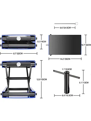 • 【LANGLEBIGE UND SCHWERE PFLICHT】 - Der Motorradheber aus Hochleistungsstahl verfügt über eine feste Struktur, die die meisten Motorräder aufnehmen kann. Das Finish ist blau pulverbeschichtet, öl- und staubbeständig und leicht zu reinigen, während es unauffällig aussieht.