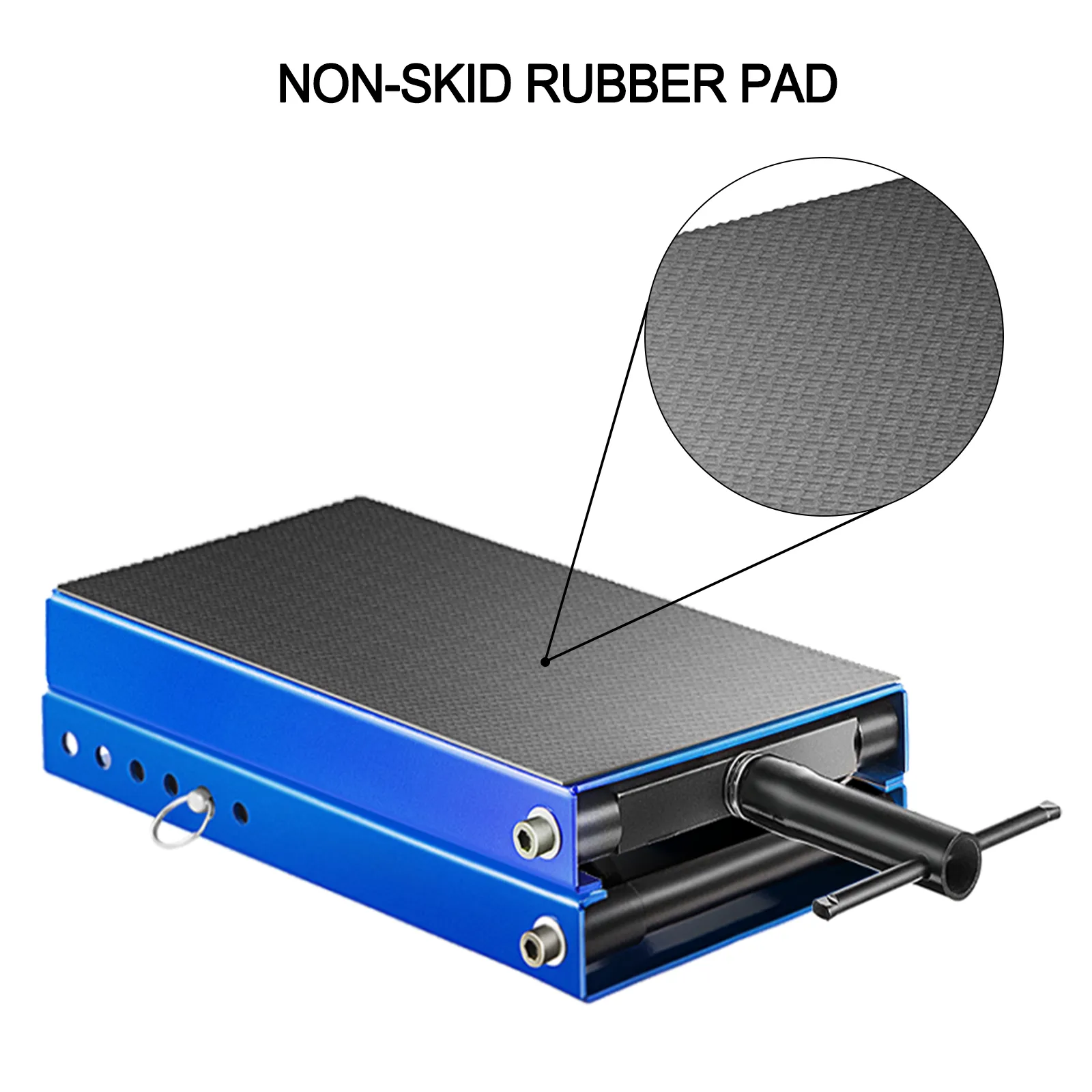 • 【SICHERHEITSDESIGN】 - Der Motorrad-Hubtisch ist mit einem Gummipolster versehen, damit Ihr Fahrrad während des gesamten Hebevorgangs nicht eingedrückt wird. Der Hebearm kann fest stecken bleiben, wenn Sie die Plattform nicht mehr anheben.