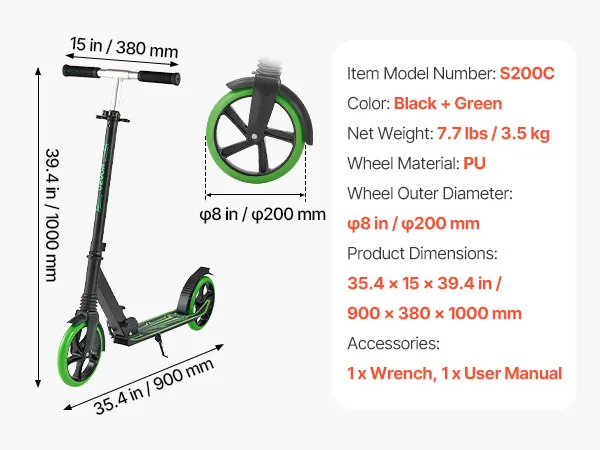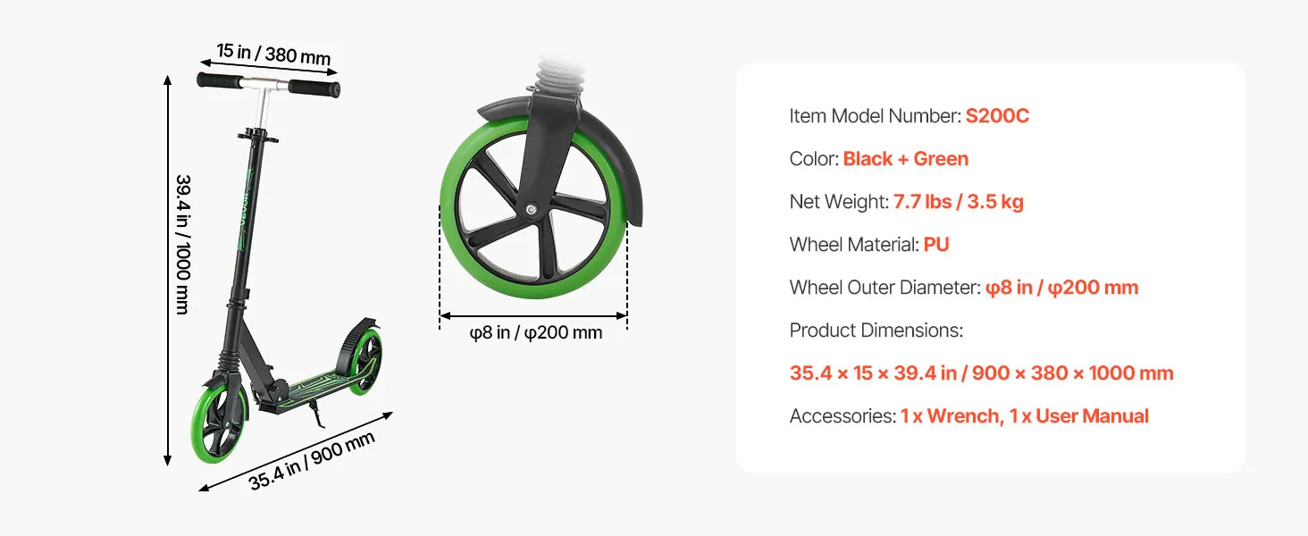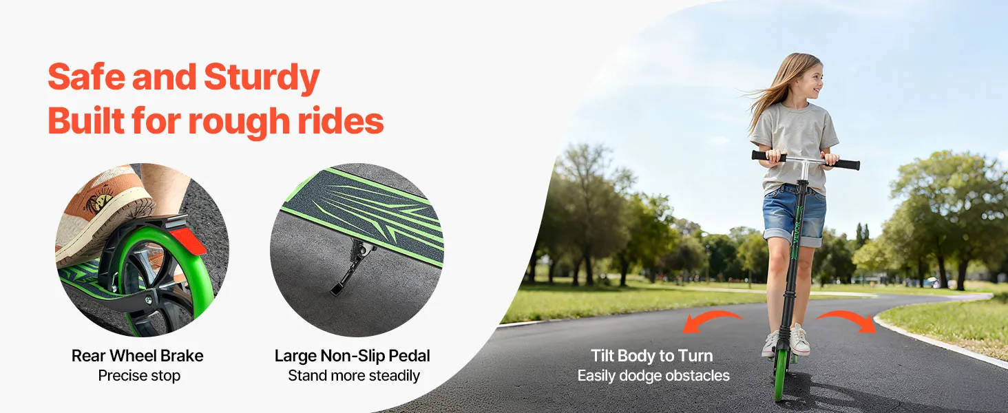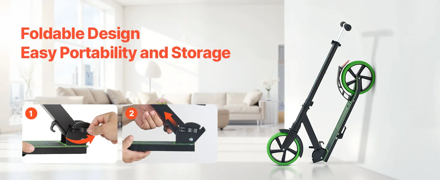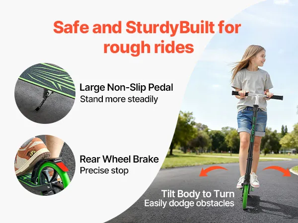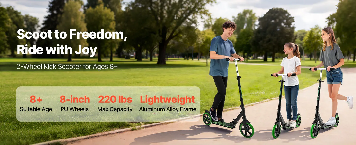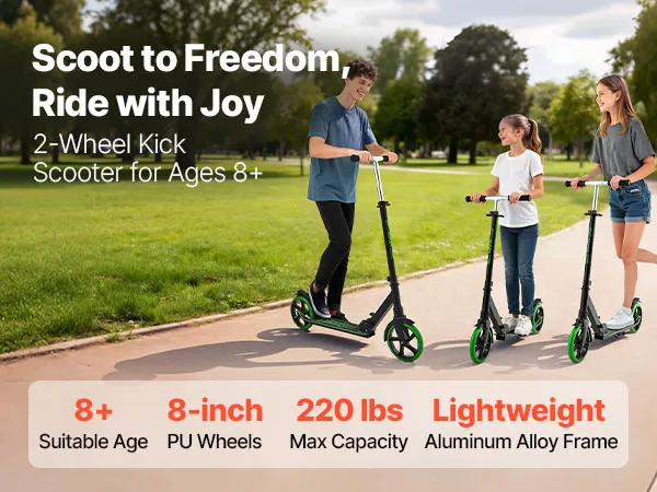 VEVOR Scooter (2 Räder) für Kinder ab 8 Jahren, Cityroller Kinderroller Straßenroller mit höhenverstellbarem Lenker & rutschfestem Deck, faltbarer Tretroller bis zu 100 kg, Schwarz + Grün