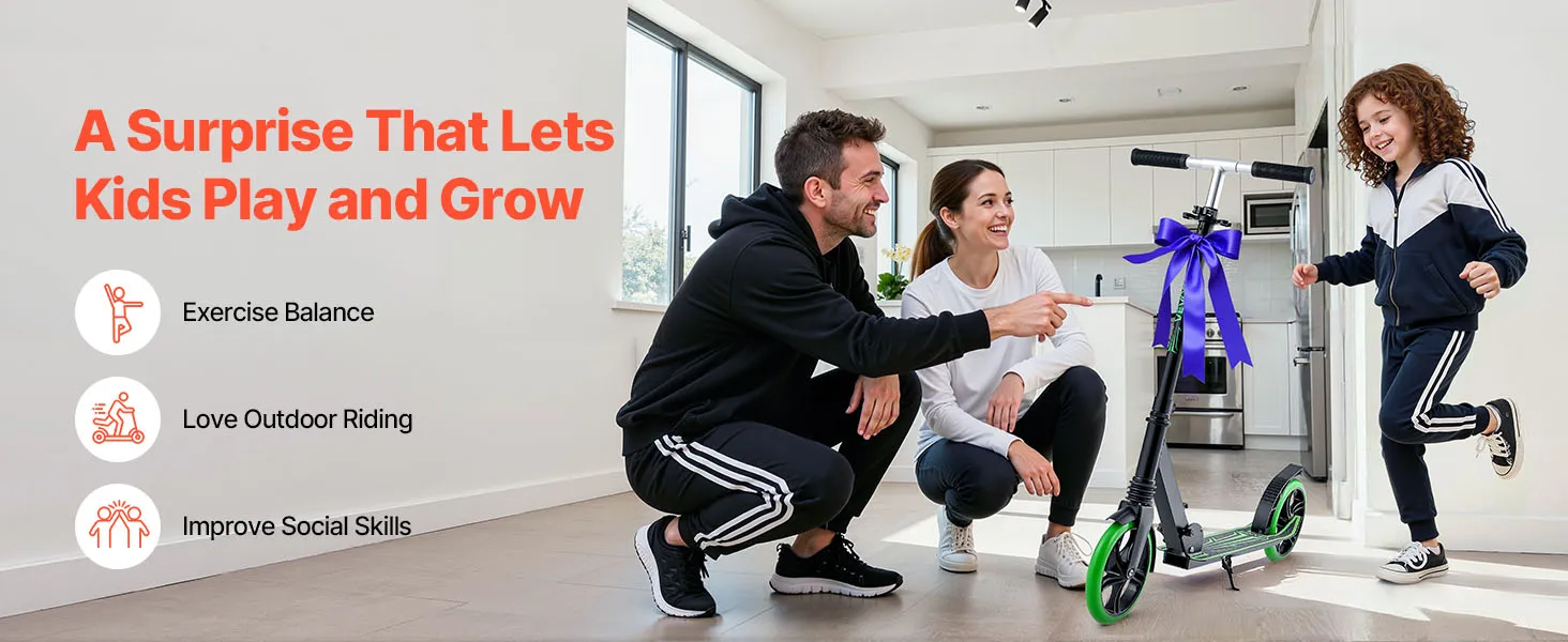 Dieser Tretroller ist für verschiedene Altersgruppen geeignet. Er bietet Kindern aktiven Spaß und Eltern eine bequeme Reisemöglichkeit. Dank seiner hohen Gewichtskapazität und den großen Rädern fährt er sich sowohl im Innen- als auch im Außenbereich reibungslos.