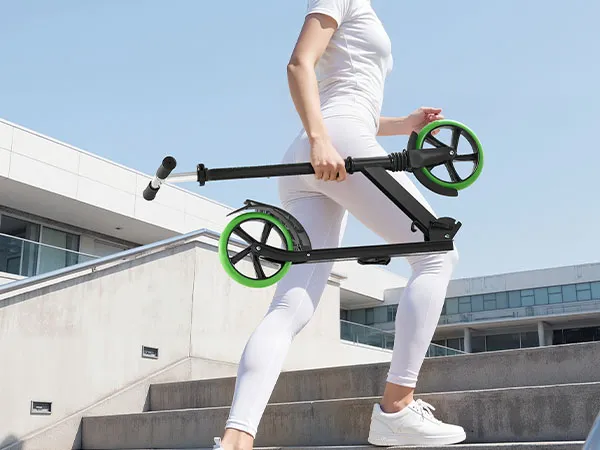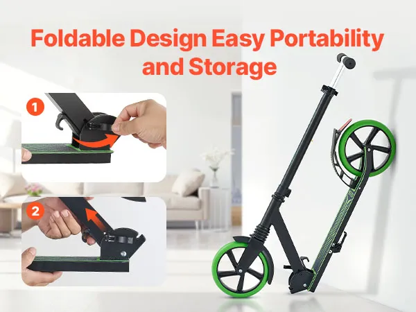 Sicheres Fahren & Zusammenklappbar: Das breite, rutschfeste Trittbrett des Kinderrollers sorgt für bessere Stabilität. Die Hinterrad-Fußbremse ermöglicht einfaches, kontrolliertes Anhalten. Der Roller lässt sich schnell zusammenklappen und ist leicht – einfach zu tragen oder im Kofferraum zu verstauen