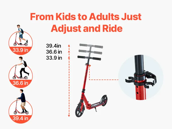 Höhenverstellbar: Verstellbarer Lenker mit drei Höheneinstellungen: 33,9/36,6/39,4 Zoll (860/930/1000 mm). Dieser Kinder-Tretroller wächst mit Ihrem Kind mit und passt sogar Erwachsenen – kein häufiges Austauschen erforderlich