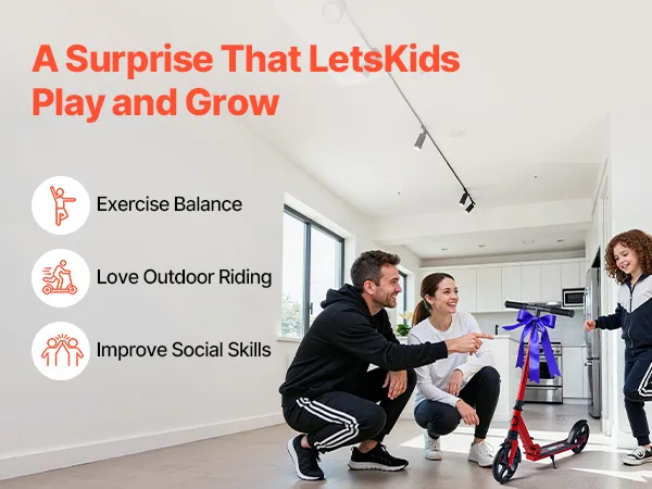 Dieser Tretroller ist für verschiedene Altersgruppen geeignet. Er bietet Kindern aktiven Spaß und Eltern eine bequeme Reisemöglichkeit. Dank seiner hohen Gewichtskapazität und den großen Rädern fährt er sich sowohl im Innen- als auch im Außenbereich reibungslos.