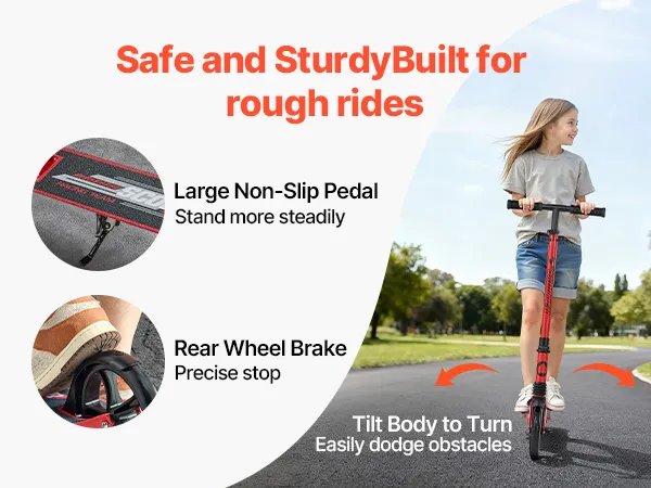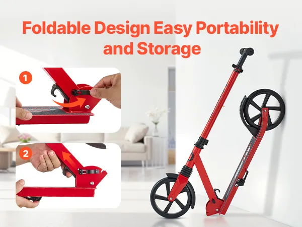Sicheres Fahren & Zusammenklappbar: Das breite, rutschfeste Trittbrett des Straßenrollers sorgt für bessere Stabilität. Die Hinterrad-Fußbremse ermöglicht einfaches, kontrolliertes Anhalten. Der Roller lässt sich schnell zusammenklappen und ist leicht – einfach zu tragen oder im Kofferraum zu verstauen
