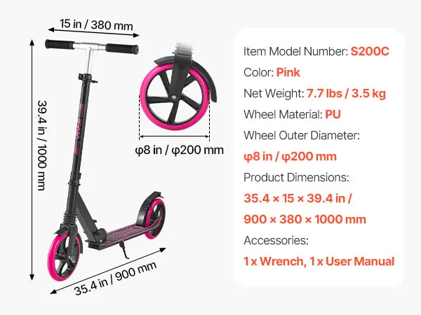 Höhenverstellbar: Verstellbarer Lenker mit drei Höheneinstellungen: 35,4/38,2/40,9 Zoll (900/970/1040 mm). Dieser Tretroller wächst mit Ihrem Kind mit und passt sogar Erwachsenen – kein häufiges Austauschen erforderlich