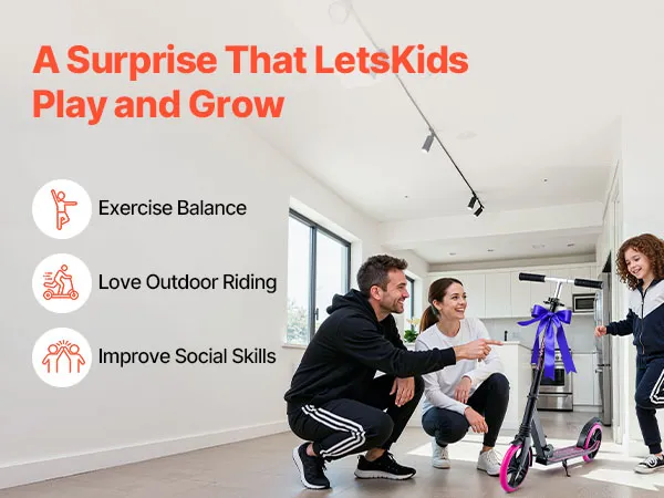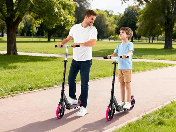 Dieser Tretroller ist für verschiedene Altersgruppen geeignet. Er bietet Kindern aktiven Spaß und Eltern eine bequeme Reisemöglichkeit. Dank seiner hohen Gewichtskapazität und den großen Rädern fährt er sich sowohl im Innen- als auch im Außenbereich reibungslos.